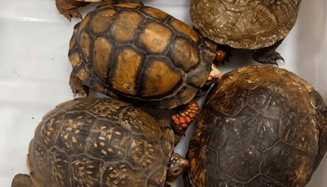 La madrugada de este viernes, la Procuraduría Federal de Protección al Ambiente (Profepa) aseguró 137 ejemplares de vida silvestre en el Aeropuerto Internacional de la Ciudad de México (AICM). Se trataba de 121 tortugas y 16 ranas que estaban escondidas en calcetines y recipientes de plástico en el interior de dos maletas con destino a Tokyo-Narita, Japón.