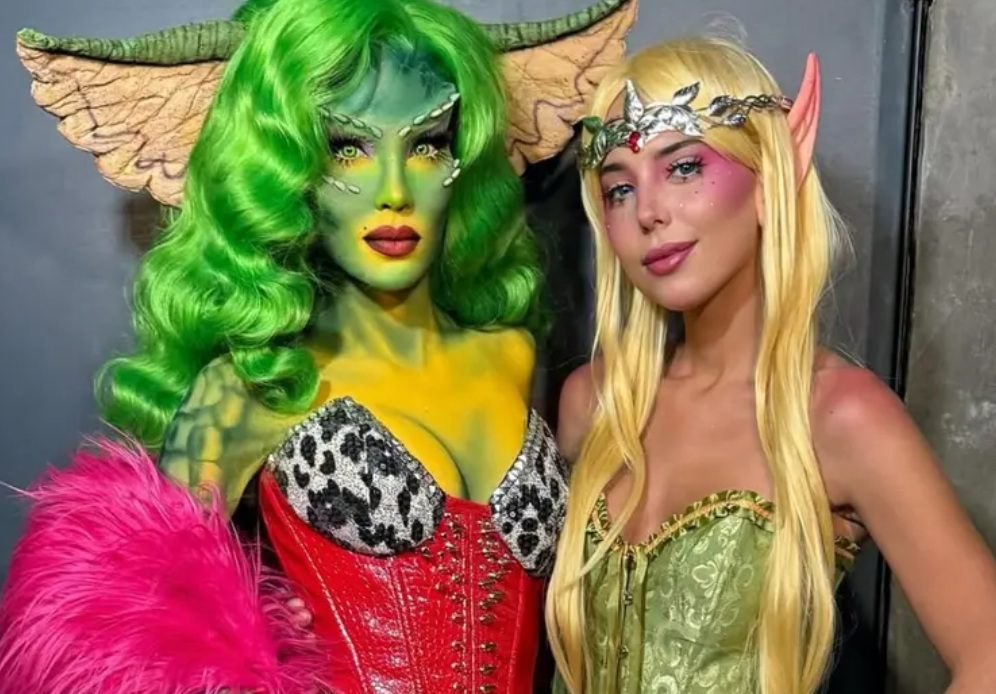 El proceso incluyó prótesis, pintura corporal y una peluca verde ondulada, elementos que dieron vida a una versión glamurosa del icónico personaje. El resultado fue tan detallado que los asistentes no tardaron en llenar las redes con fotos y videos del impresionante disfraz.