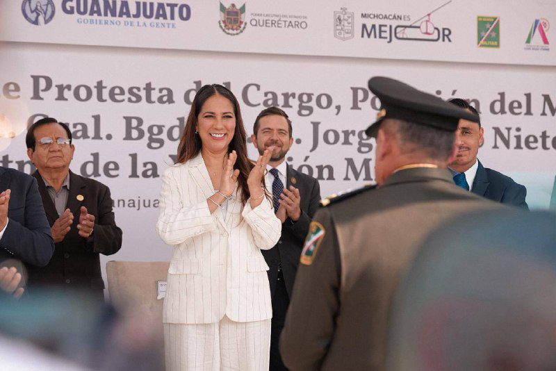 Asiste Libia Dennise a la ceremonia de Cambio de Mando en la XII Región Militar. La Gobernadora de la Gente, Libia Dennise García Muñoz Ledo, asistió a la ceremonia de Toma de Protesta al Cargo, Posesión del Mando y Protesta de Bandera por parte del General de División Diplomado de Estado Mayor (DEM), Jorge Pedro Nieto Sánchez, ComandanteInterino de la XII Región Militar, con sede en Irapuato.