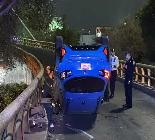 Un automóvil volcó en los accesos del Aeropuerto Internacional de la Ciudad de México (AICM), lo que originó la rápida intervención de los cuerpos de emergencia.