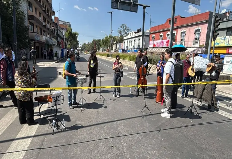 Bloqueo musical en Calzada México-Tacuba: músicos exigen proceso transparente para elegir director. Integrantes de la Orquesta Típica de la Ciudad de México bloquearon este martes ambos sentidos de la Calzada México-Tacuba y los carriles laterales del Circuito Interior, en la alcaldía Miguel Hidalgo, para protestar contra la designación de su actual directora, a quien acusan de haber sido impuesta sin un proceso transparente de selección.