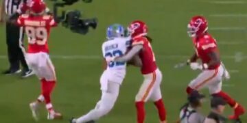 La liga determinó que el golpe que el jugador propinó al receptor JuJu Smith-Schuster fue una conducta antideportiva y “no futbolística”, contraria a las normas de la NFL. El defensivo de los Detroit Lions, Brian Branch, fue sancionado con un partido de suspensión tras protagonizar un altercado al término del encuentro frente a los Kansas … Sigue leyendo Brian Branch suspendido por agresión en partido de la NFL