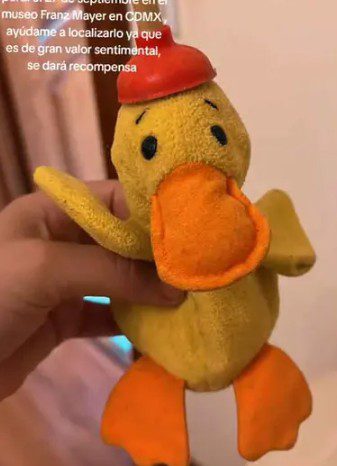 En una ciudad tan inmensa como la CDMX, perder un objeto suele significar no volver a encontrarlo. Sin embargo, esta historia podría ser diferente. El pasado viernes, alrededor de la 1:45 de la tarde, en el jardín central del Museo Franz Mayer —justo frente a la cafetería— se extravió un juguete muy especial: un pato de peluche amarillo. No se trata de un peluche cualquiera, pues ha estado con su dueña desde la infancia y se convirtió en un acompañante indispensable, lleno de recuerdos y apoyo emocional.