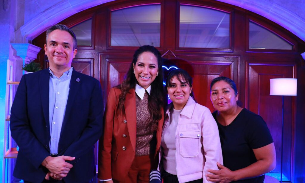 La Gobernadora de Guanajuato, Libia Dennise García Muñoz Ledo, conversó con Salomón Ceballos, Director General delIECA, así como con Leticia Echeverría y Karina Contreras, dos mujeres guanajuatenses que hoy son emprendedoras gracias a los conocimientos adquiridos en esta institución.