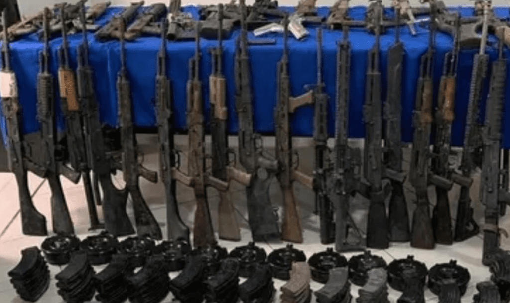 Dentro del inmueble, ubicado en un fraccionamiento privado denominado Bosques del Rey, elementos de la Secretaría de Marina Armada de México decomisaron 35 rifles AK-47, 33 cargadores de 7.62 mm, mil 599 cartuchos calibre 50 y dos mil 400 cartuchos calibre 7.62 mm.
