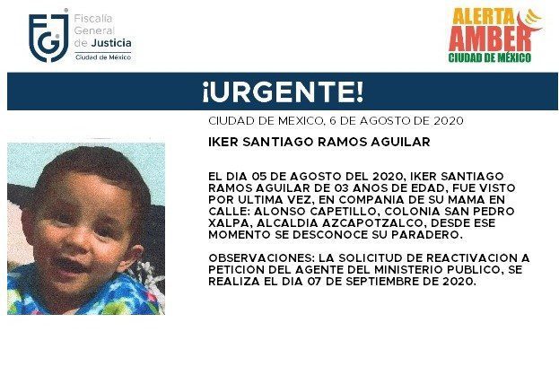 Leer másDetailsEl MP solicitó la reactivación de la Alerta Amber, dado que el paradero de Iker Santiago se desconoce desde el...