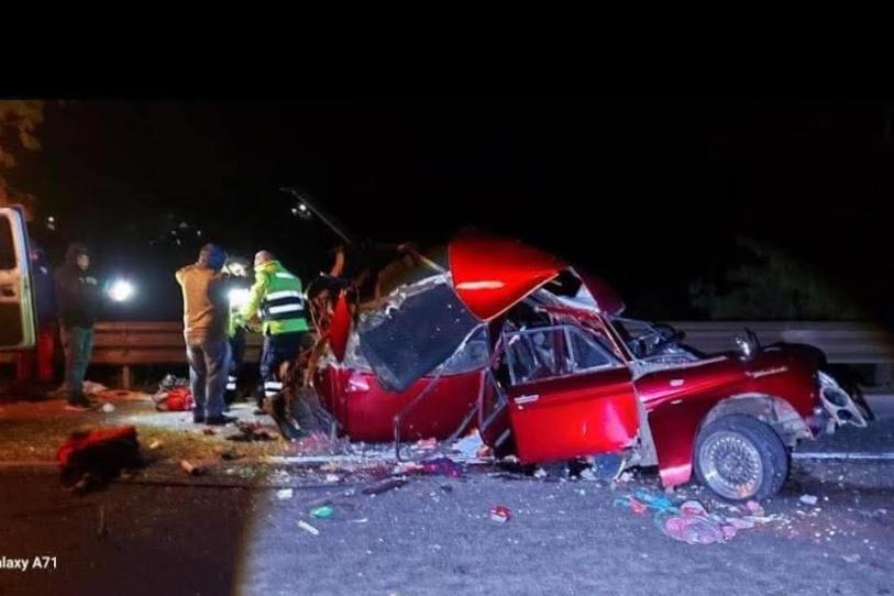 En el sitio del accidente, un automóvil particular color guinda quedó completamente destruido tras el fuerte impacto. Los dos ocupantes del vehículo perdieron la vida en el lugar, por lo que al arribo de paramédicos y cuerpos de emergencia únicamente se confirmó el fallecimiento y se aseguró el área.