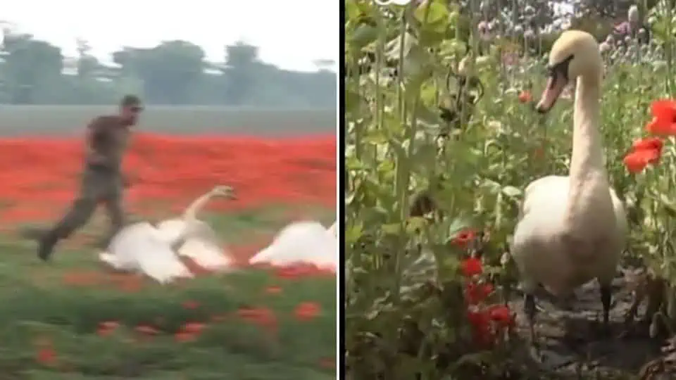En Eslovaquia cientos de cisnes invaden los campos de amapola y se vuelven adictos, están perdiendo la capacidad de volar. Los agricultores han pedido ayuda a las autoridades.