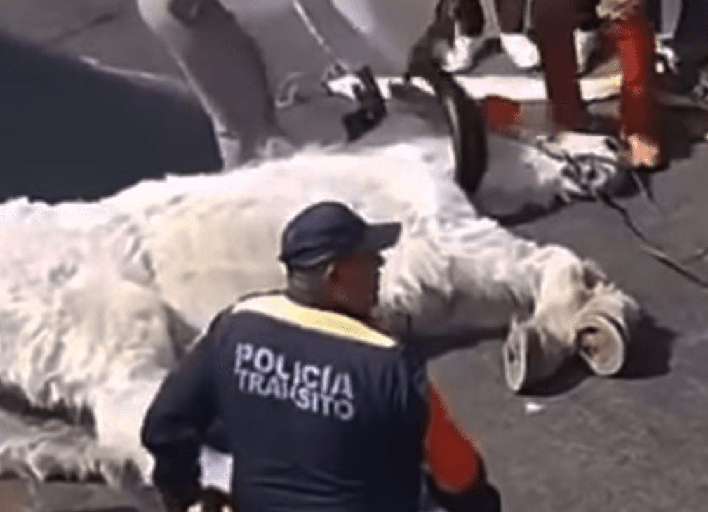 De acuerdo con un video que fue difundido a través de las redes sociales, se observa al equino jadeando sobre el asfalto.