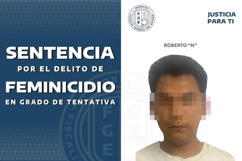 Condenan a más de 26 años de cárcel a agresor por intento de feminicidio en Morelos. La Fiscalía General del Estado (FGE) de Morelos obtuvo una sentencia condenatoria de 26 años, ocho meses y 20 días de prisión en contra de Roberto “N”, quien fue declarado culpable del delito de feminicidio en grado de tentativa, por hechos ocurridos en el municipio de Yautepec.