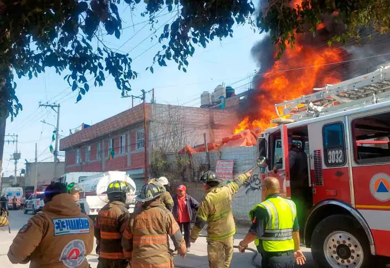 Controlan incendio en bodega de materiales en Ecatepec; vehículos quedan calcinados