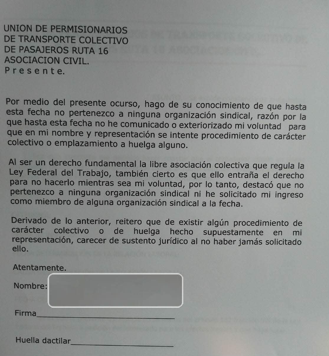 Pero los abusos no terminan ahí. Los conductores son obligados a firmar hojas en blanco que igual sirven como renuncia voluntaria o como documentos de aceptación, un mecanismo de control que les deja expuestos a despidos arbitrarios e injusticias. Además, los choferes cada fin de año deben firmar documentos donde constan montos de aguinaldo que nunca reciben.