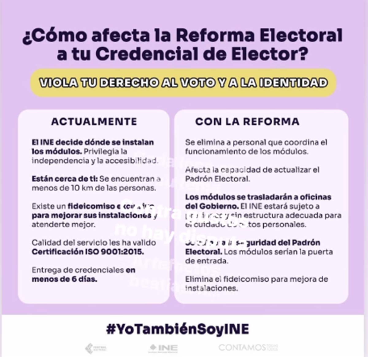 Al poner de fondo una parte de la melodía, la esposa del Presidente Andrés Manuel López Obrador, posteó un gráfico que publicó el INE, titulado ¿cómo afecta la reforma electoral a tu credencial de elector?.
