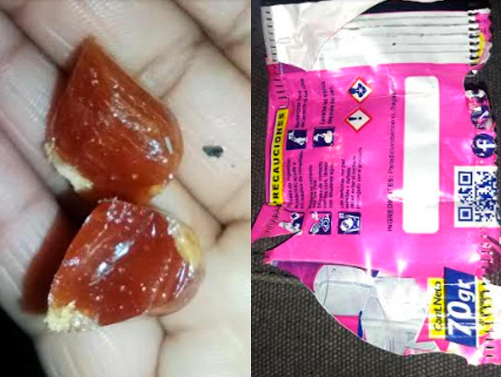 Posteriormente, revisó nuevamente los dulces del menor, detectando al menos un supuesto dulce más que al abrirlo tenía las mismas condiciones de presentación del producto que estaba consumiendo su hijo.