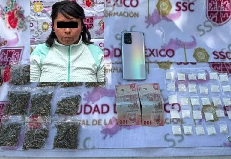 Detienen a mujer con droga; la vinculan con banda de extorsión en la CDMX. Elementos de la Secretaría de Seguridad Ciudadana (SSC) de la Ciudad de México arrestaron a una mujer en la colonia Guerrero, alcaldía Cuauhtémoc, en posesión de varias dosis de droga. De acuerdo con las investigaciones, estaría vinculada a un grupo criminal dedicado a la extorsión de comerciantes en la zona.