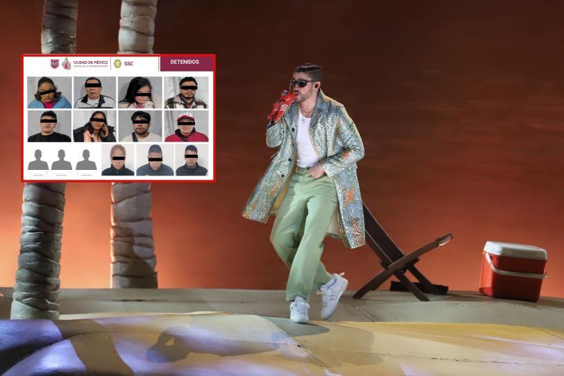 Detienen a once por presunta reventa de boletos en concierto de Bad Bunny en la capital. Once personas fueron aseguradas por su posible participación en la reventa de entradas durante un concierto de Bad Bunny en la Ciudad de México. La acción se llevó a cabo como parte del operativo de seguridad implementado en el Estadio GNP, ubicado en la alcaldía Iztacalco.
