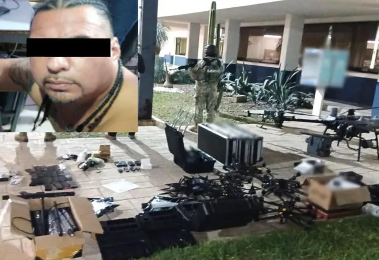 Detienen en Reynosa a presunto operador de drones equipados con explosivos. Elementos de la Guardia Estatal de Tamaulipas y del Ejército Mexicano detuvieron en Reynosa a un presunto integrante de un grupo delictivo, a quien le fue asegurado un arsenal que incluía drones modificados para transportar y lanzar explosivos.