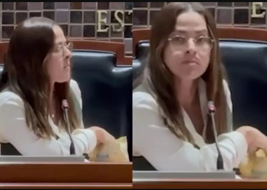 En el video, que rápidamente se viralizó, se observa a la legisladora —quien además funge como presidenta de la Comisión de Puntos Constitucionales— sacando una bolsa de palomitas y comiendo con total naturalidad, mientras otra diputada hablaba desde la tribuna.