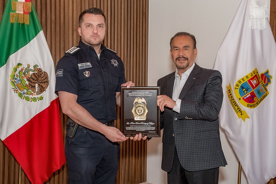 El Alcalde Pedro Rodríguez reconoció la labor de Fabián Gómez Calcáneo durante los cuatro años que estuvo al frente de la seguridad del municipio, consolidando una policía municipal cercana a la gente y abatiendo la corrupción al interior de esta corporación, por lo que deseó el mayor de los éxitos en su carrera.