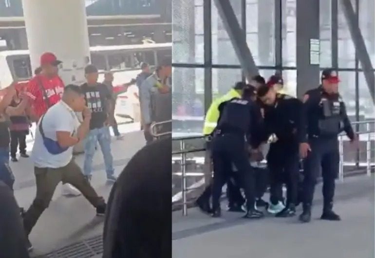 Las imágenes capturaron a varios agentes sometiendo a dos personas, mientras que otros pasajeros se quedaron a observar la disputa. La situación se intensificó cuando un grupo de pasajeros intentó defender a los detenidos, lanzando insultos y golpes a los oficiales.