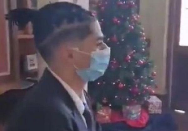 “Estoy aquí en el colegio Salesianos, a mi hijo no lo dejan hacer la licenciatura. El profesor Mario Torres no lo deja hacer la licenciatura por el corte de pelo de mi hijo“, afirmó el hombre en el video.