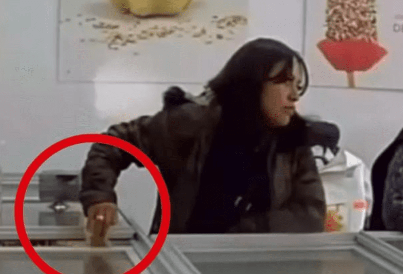 De acuerdo con la grabación, la trabajadora del local se encontraba despachando un pedido cuando la hija se acercó al congelador de paletas. Con cautela, utilizó el codo para abrir la tapa sin llamar la atención y comenzó a retirar los productos de manera gradual. En total, extrajo cuatro paletas que fue entregando discretamente a su madre por debajo del mostrador.