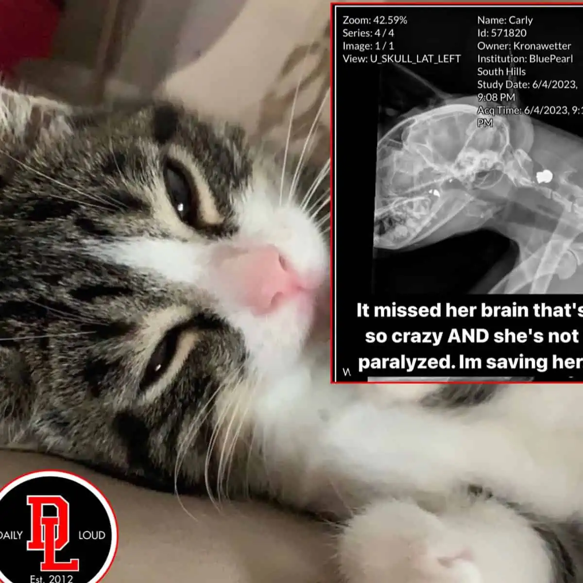 Gatita regresa a su casa con un balazo en la cabeza y sobrevive. En la ciudad de Pittsburgh (Pensilvania), Carly la gatita, recibió un disparo deliberado en la cabeza.