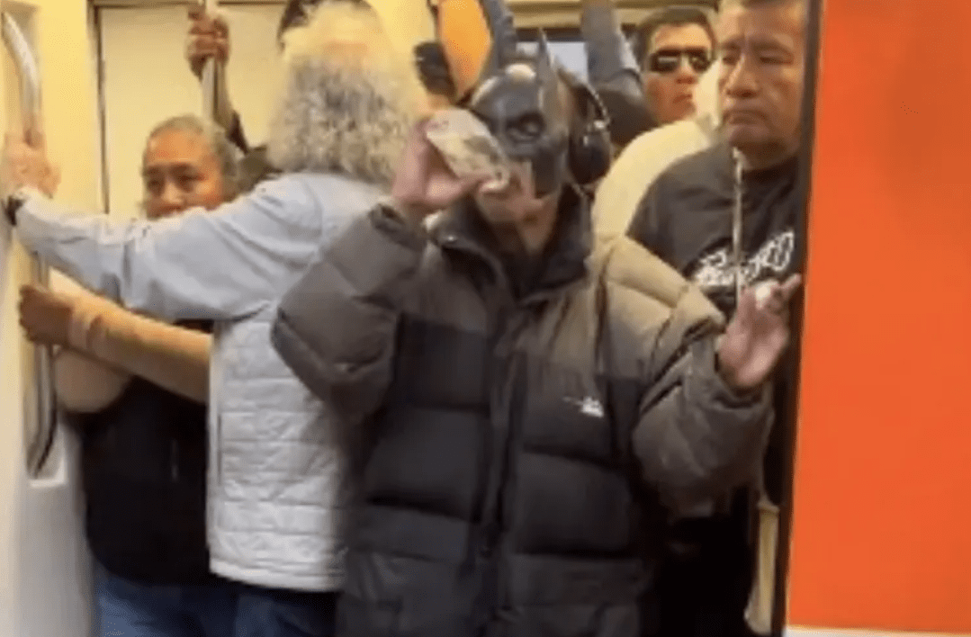 Un sujeto disfrazado como ‘Batman’ fue grabado en el Metro de la Ciudad de México ingiriendo bebidas alcohólicas mientras estaba el vagón estaba detenido