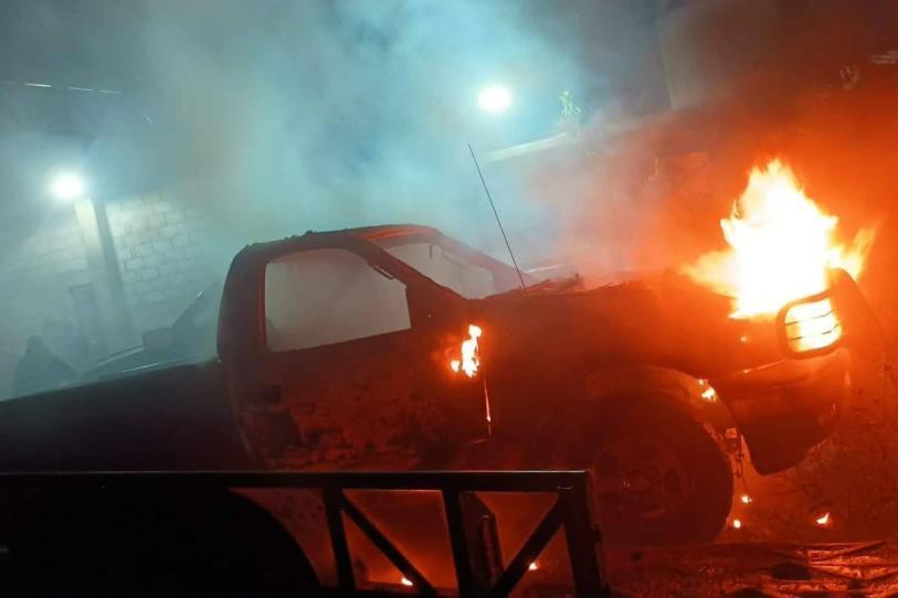 En ese segundo punto, los civiles armados provocaron un incendio en otra vivienda propiedad de Silva Valeriano. El siniestro ocasionó afectaciones estructurales menores y la pérdida total de dos camionetas que se encontraban estacionadas en el lugar. Tras el reporte, elementos de la Policía Estatal, Policía Municipal y Protección Civil acudieron para controlar el fuego, logrando evitar que se extendiera a casas aledañas.