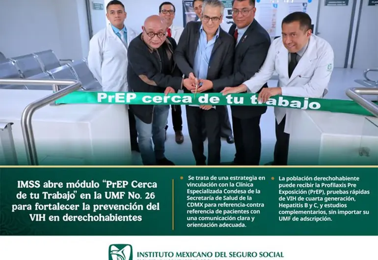 IMSS inaugura módulo de atención para prevención del VIH en CDMX. El Instituto Mexicano del Seguro Social puso en funcionamiento el módulo “PrEP Cerca de tu Trabajo” en la Unidad de Medicina Familiar (UMF) No. 26, ubicada en la zona de la Condesa en la Ciudad de México, con el propósito de reducir los nuevos casos de VIH.