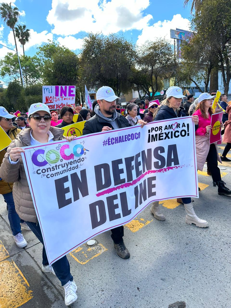 Con anuncios de “Mi INE no se toca”, “Yo defiendo al INE”, “Mi voto no se toca”, los integrantes de “Coco, construyendo comunidad”, se unieron a la segunda convocatoria realizada para evitar que la reforma electoral propuesta por el presidente de México, Andrés Manuel López Obrador, sea aprobada por la Suprema Corte de la Justicia de la Nación.