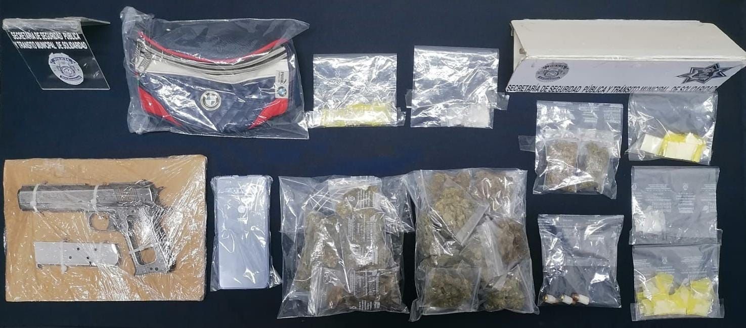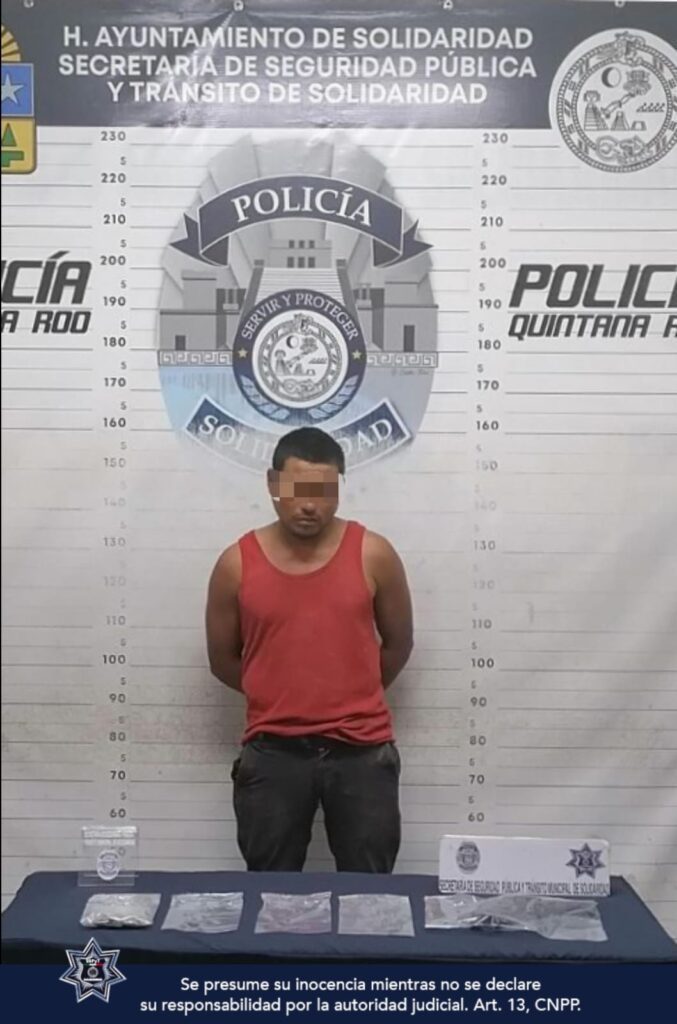 Como resultado del reforzamiento de vigilancia en la colonia irregular In House, la Policía Municipal de Solidaridad aseguró en dos hechos distintos, a 4 sujetos, un arma de fuego, un cargador abastecido con 3 cartuchos y más de 70 dosis de posibles drogas.