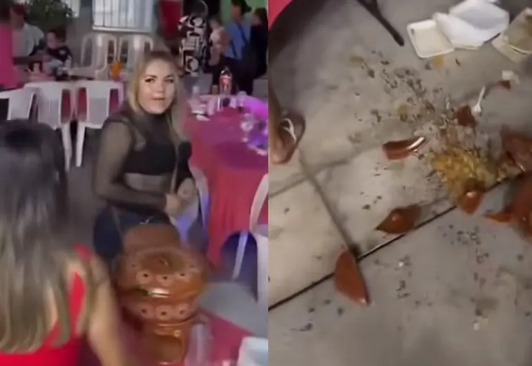 Ante la negativa, la mujer reaccionó con enojo, tomó una cazuela con guisado y la lanzó al piso, generando un ambiente de tensión entre los asistentes. “Si ya te servimos cinco”, se escucha decir a una de las encargadas mientras intenta calmar la situación.