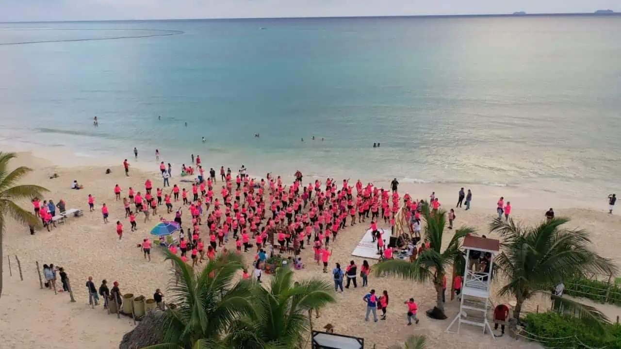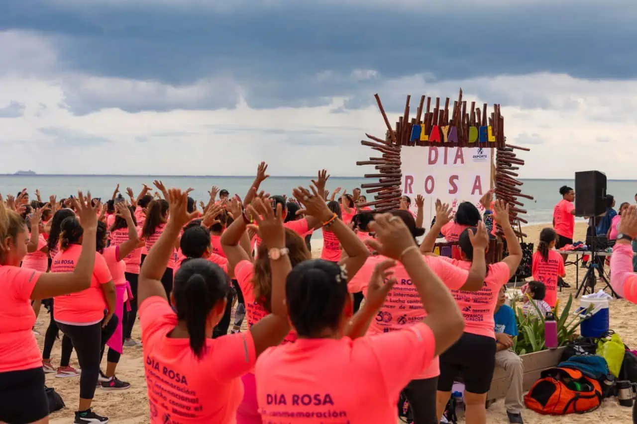 Asimismo, Lili Campos anunció la apertura del carril rosa en la alberca de la Unidad Deportiva de Puerto Aventuras y agradeció a todas las mujeres participar en la activación física y estar unidas por una misma causa.