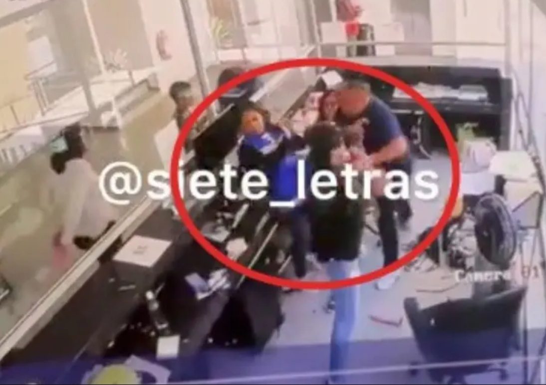 En el video, que tiene una duración de poco más de 20 segundos, se observa cómo el hombre se acerca violentamente y golpea al administrador, quien se encontraba sentado. La víctima intenta retroceder sin responder al ataque, mientras dos mujeres presentes en el lugar graban y llaman por teléfono.