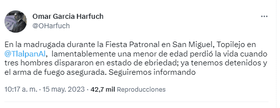 El Secretario de Seguridad Ciudadana de la Ciudad de México, Omar García Harfuch, hizo una declaración en la que confirmó el deceso de la menor.