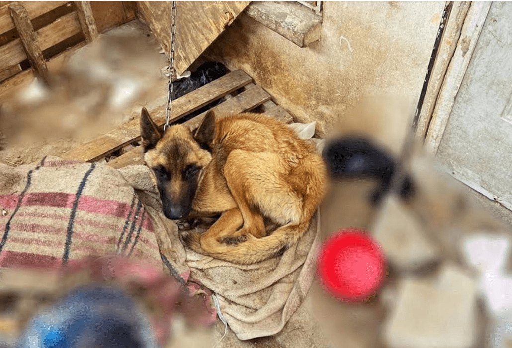 En el lugar se encontró a dos caninos que sufrían maltrato animal, observando que los perritos sufrían de una desnutrición severa.
