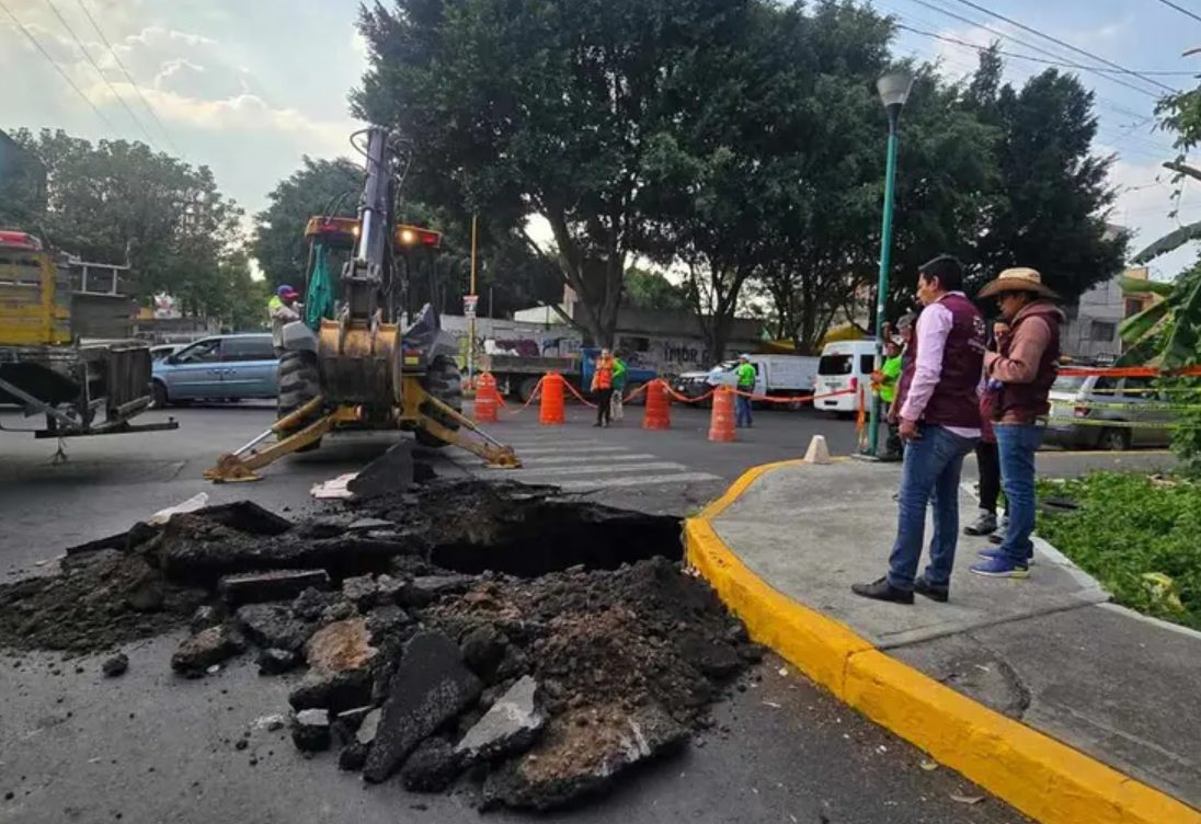 Un hundimiento en la colonia Escuadrón 201 mantiene cerrada una calle y genera peligro para la movilidad en la zona.