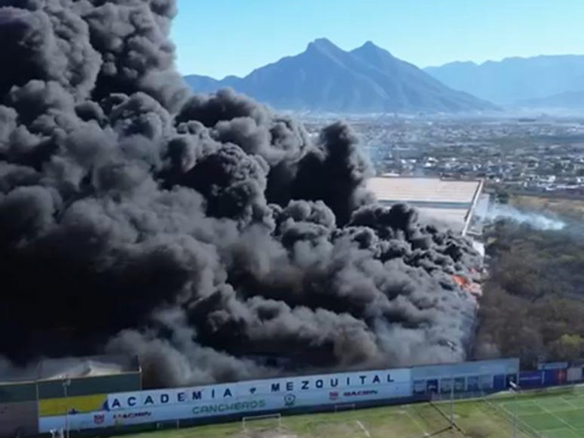 Persisten labores para extinguir incendio en San Nicolás de los Garza, Nuevo León. El fuego, que inició ayer a las 13:54 horas en la empresa Inova Plastics Re, ha requerido la participación de 120 bomberos, 100 elementos de seguridad y 50 de logística en su combate.