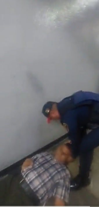 Uno de los uniformados le levanta la cabeza y el hombre parece reaccionar bien.