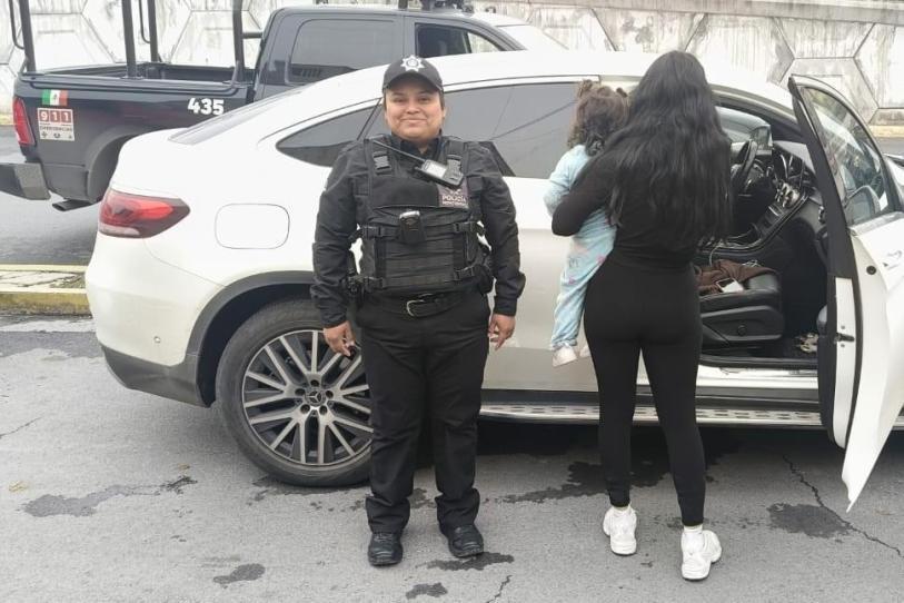 Policías de Monterrey auxilian a menor atrapada dentro de una camioneta. Elementos de la policía municipal de Monterrey rescataron a una niña de dos años que quedó encerrada de manera accidental al interior de una camioneta, luego de un reporte emitido por el sistema de videovigilancia C4, en la colonia Residencial Industrial Lincoln.