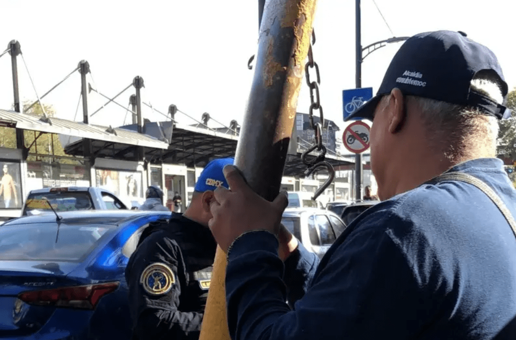 Como resultado del dispositivo de seguridad que inició alrededor de las 9 de la mañana sobre avenida Insurgentes Norte, a la altura del número 145, en Tlatelolco, se retiraron cadenas, objetos para apartar lugares y tubos fijados al pavimento.