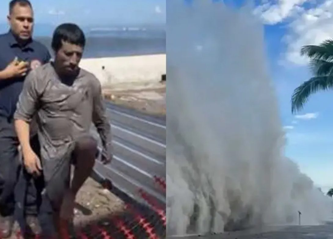 De acuerdo con testigos, el hombre ignoró las advertencias de las autoridades y se lanzó al agua pese a las condiciones peligrosas. Poco después, fue derribado por una serie de olas que lo empujaron contra las rocas, destruyendo su tabla y dejándolo atrapado entre las corrientes.