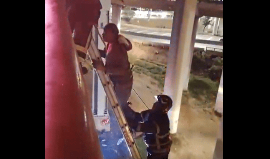 Elementos del Heroico Cuerpo de Bomberos de la Ciudad de México acudieron al sitio y realizaron las maniobras necesarias para llegar hasta el punto donde se encontraba el hombre. Para concretar el rescate, el personal especializado ascendió a la estructura elevada y utilizó equipo técnico como escaleras, cuerdas y sistemas de poleas, con el objetivo de descenderlo de manera segura.