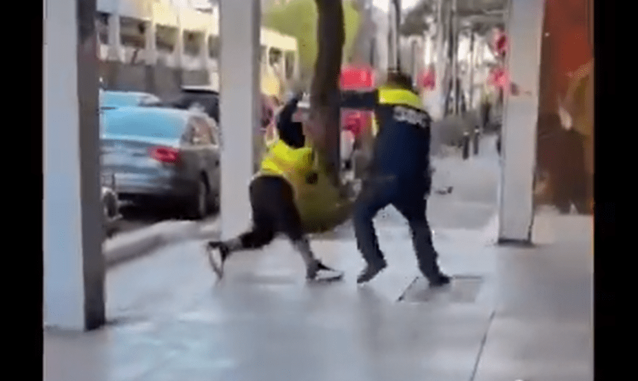 Riña entre policía y franelero frente al Metro queda registrada en video