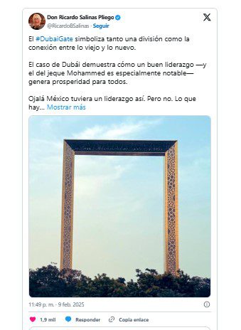 El empresario Ricardo Salinas Pliego generó un gran debate en las redes sociales al publicar un mensaje en el que destaca el liderazgo de Dubái, comparándolo con la situación política en México.