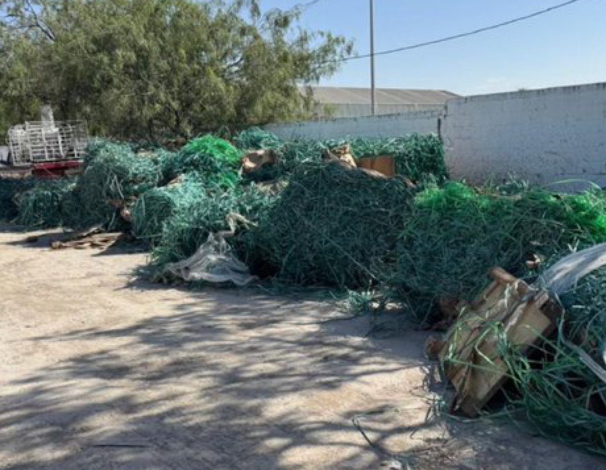 La Secretaría de Seguridad Pública Municipal informó que el material, compuesto por siete pacas de aproximadamente 100 kilos cada una, representaba un riesgo de contaminación y de incendio.