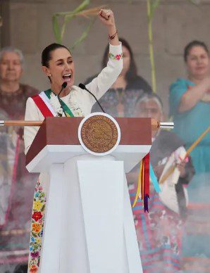 Tengo claro que mi responsabilidad es llevar a México por el sendero de la paz, la seguridad, la democracia, el cuidado del medio ambiente, las libertades y la justicia. Tengo claro que nuestra guía es el bienestar y la felicidad del pueblo”, expuso la primera presidenta en la historia del país.