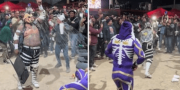 Un luchador de La Puerkiza Extrema golpeó con una silla a un aficionado ebrio que le lanzó cerveza durante una función de lucha libre extrema en León Un momento de alta tensión se registró durante una función de lucha libre extrema realizada en La Hacienda Charra, en León, Guanajuato, luego de que un luchador respondiera … Sigue leyendo Sillazo en función extrema desata polémica en León