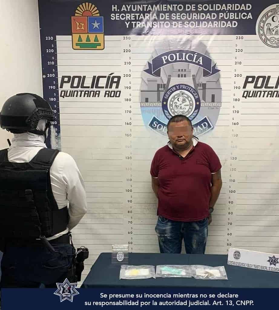Al atender un reporte de posible venta de drogas, los oficiales de la Policía Turística se trasladaron a un local sobre calle 38 con Quinta Avenida, donde aseguraron a Noel “N” de 43 años de edad, originario de Campeche en posesión de un envoltorio con posible marihuana y 22 con polvo blanco al parecer cocaína.